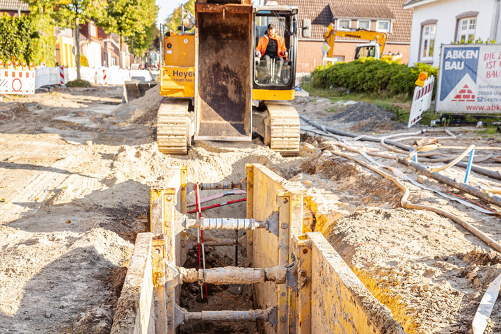 Die Erneuerung des Regenwasserkanals ist auf dem gesamten Bauabschnitt fertiggestellt. Die Arbeiten am Schmutzwasserkanal schreiten voran.